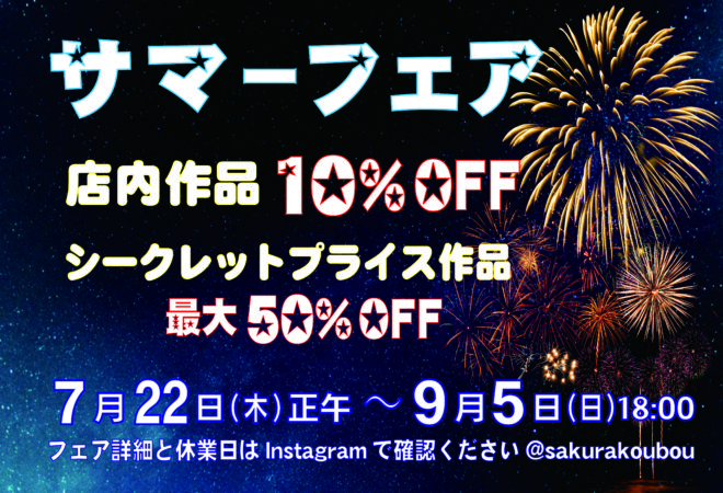 今回作家の皆様にご協力頂きましてサマーフェアを開催する事になりました。
